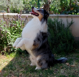 Pastore australiano maschio, blue merle con importante pedigree. HSF4, CEA, PRA clear by parentage MDR1 and DM +/+ or +/- Dentatura completa, chiusura a forbice Disponibile per monta. Solo femmine con pedigree. Maggiori info e foto in privato.