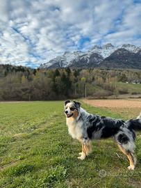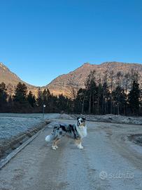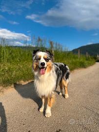Bellissimo esemplare di Pastore Australiano disponibile per monta. Di seguito info e caratteristiche. Nome: RUM Razza: Pastore Australiano Mantello: Blue Merle Età: 2 anni e 4 mesi (22 Agosto 2023) Peso: 27 kg circa Occhi: marroni Coda: intera Genitori: Mamma blue merle, Papà black tricolor (albero genealogico disponibile e ottimo) Analisi: eseguiti test genetico MDR1 e lastre anche e gomiti (A/0). Documentazioni disponibili insieme al pedigree. Carattere: Equilibrato, curioso, per nulla geloso. Stile di vita: Abituato a stare sia in casa che all'aperto, con giardino recintato. Attivo in passeggiate quotidiane e in gite domenicali in montagna o sulla neve. Luogo: Fiave' (TN) - Disponibilità a spostarci per accoppiamento. Stato Salute: Ottimo, con muscolatura ben proporzionata. Vaccinazione annuale e antirabbica fatte. Disponibilità di accoppiamento solamente con femmine Pastore Australiano con pedigree e con test fatti. Per maggiori informazioni: 3883478441 - Ion