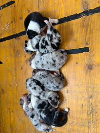 Cuccioli 5 femmine Blue Merle 1 maschio Blue Merle e 1 maschio tricolor Black in consegna sverminati vaccinati con microchip e Pedigree da fine febbraio 2026 genitori testati per le patologie della razza ed esenti displasia anche e gomiti se interessati e per ulteriori informazioni telefonare al 3498718038
