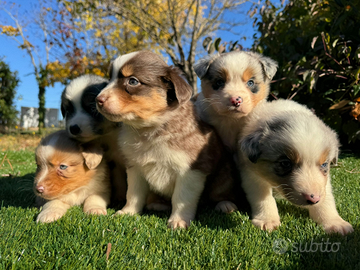 Disponibili bellissimi cuccioli di Pastore Australiano nati il 20/10/2025 ( 1 maschio e 1 femmina Blue merle, 1 femmina Red merle, 2 femmine Red tricolore, 1 maschio e 1 femmina Black tricolore) verranno ceduti a svezzamento completo vaccinati, svermati, microchip e Pedigree ENCI. SOLO PER VERI INTERESSATI NO PERDITEMPO POSSIBILITÀ DI PAGAMENTO DILAZIONATO.