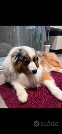 Ciao sono Noah, sono un pastore australiano maschio di due anni con pedegree, sono molto peloso e peso 30 kg. Sono un cucciolone dolce , amabile e vado d'accordo con altri cani. I test per i gomiti e altre malattie genetiche sono ok tutto perfetto .