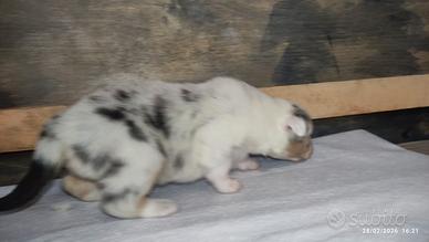 Ultima cucciolata di pastore australiano disponibile. Nata il 06/02 e consegnabile dopo i 60 giorni di vita. Verrà ceduta con due sverminazioni, libretto sanitario con indicazione dei trattamenti ricevuti, vaccino, certificato del veterinario con lo stato di buona salute. La cucciola sarà abituata all' uso dei tappetini igienici e svezzata a croccante. Cresciuta in ambiente familiare con altri cani, bambini e cavalli. NO pedigree.