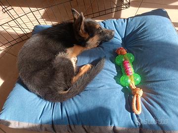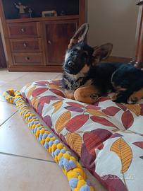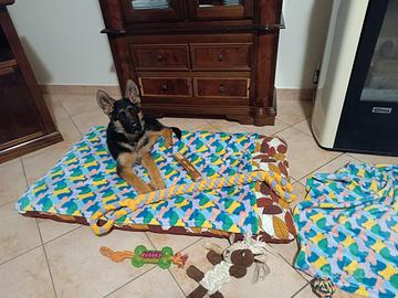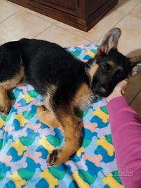 Cucciolo di pastore tedesco puro, 3 mesi e mezzo, preso ai 61 giorni da allevamento ENCI FCI, pedigree, microchip, libretto vaccini con visite veterinarie, sverminazioni, 3 vaccini. Genitori con pedigree ed esenzione displasie certificate. Perfetto morfologicamente...bellissimo. Cedo causa spostamento lavoro.