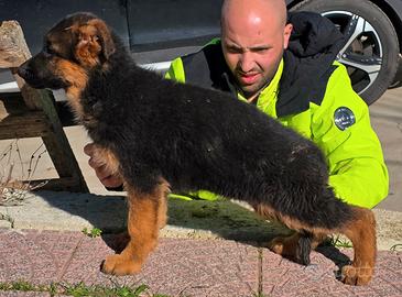 Nel nostro allevamento iscritto all' ENCI, sono disponibili 3 cuccioli di Pastore Tedesco di 3 mesi ad alto livello, con eccellente carattere, i genitori sono dei Riproduttori Certificati di elevata bellezza hanno un importante e moderno patrimonio genetico, hanno Esenzione dalla Displasia delle Anche e dei Gomiti certificata sul Pedigree, hanno DNA depositato, i cuccioli vengono ceduti con : Pedigree e numero iscrizione al Libro delle Origini ROI libretto sanitario con 2 vaccini e 3 sverminazioni, con microchip e iscrizione Anagrafe Canina, certificato di garanzia come richiesto dal codice etico dell'allevatore di cani ENCI, puppy kit con indicazioni alimentari e consigli per una corretta crescita, per la consegna dei cuccioli, per chi non può recarsi presso nostro allevamento, si offre un servizio di trasporto, con vettore Pet, che si prenderà cura del cucciolo garantendo la consegna, per altre info contatto telefonico