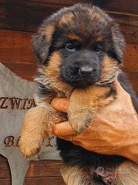 Importante cucciolata di altissima genealogia con le migliori e attuali linee di sangue; i cuccioli discendono da genitori e nonni esenti da displasia dell'anca e del gomito (con ufficializzazione Ce.Le.Ma.Sche certificata sul pedigree), brevetto caratteriale (IGP), selezione morfologica con DNA depositato e prestigiosi risultati agonistici a raduni e campionati in Italia (SAS) e Germania (SV).