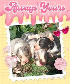 Pastori australiani senza pedigree enci, disponibili maschi e femmine merlé e tricolor tutti da prenotare con circa 25 giorni di vita. Verranno ceduti solo compiuti i due mesi con libretto sanitario, microchip, sverminazione e prima vaccinazione!