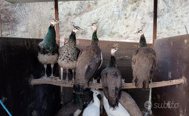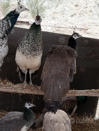 Disponibili sia maschi che femmine di giovani pavoni comuni (pavo cristatus india blu)