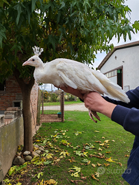 Disponibili pavoni. Maschio bianco del 2024 - 50 € Maschio bianco del 2025 - 35 € Maschio blu del 2025 - 20 €