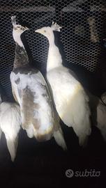 Disponibili pavoni anno 2025 150€ maschio bianco 100 femmina bianca 130 femmina arlecchino vendo o scambio con animali di mio gradimento pari valore. contattare numero +39 347 510 7643