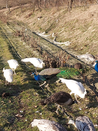 Vendo per esubero Pavoni comuni, Pavoni Nigripennis e Pavoni bianchi di diverse età. Sono tutti nati da cova naturale direttamente dalle pavonesse. Sono abituati a stare liberi e non si allontanano dall'abitazione. Sono abituati alle persone alle macchine.