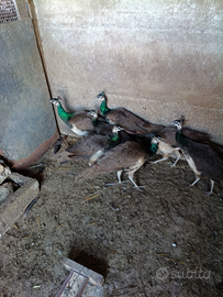 Vendesi pavoni maschi e femmine,di circa un anno coppie o singoli prezzo 50 euro trabbile per quantità.