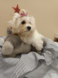 Di Taglia Molto Piccola Pelo Lungo Bianco Soffice Quattro Mesi Circa Abituati a sporcare su Traversina Alimentazione