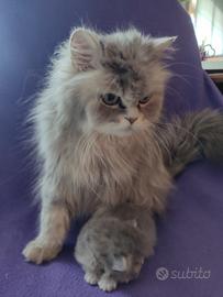 Menta , cucciola di persiana chinchilla nella rara colorazione Golden blu silver shaded, colore uguale alla mamma , ultima foto il papà. Nata il 6 aprile 2026 e pronta per la nuova famiglia per fine giugno . La prima nata , dolce affettuosa , ma determinata , e vivace, grande fusona . Si consegna svezzata vaccinata , abituata a rumori ed ad altri animali , alla toeletta quotidiana , ai viaggi in macchina . Si richiedono affetto ed attenzioni , per proseguire la sua vita felice. Si può prenotare con acconto . Foto e video di richiesta.