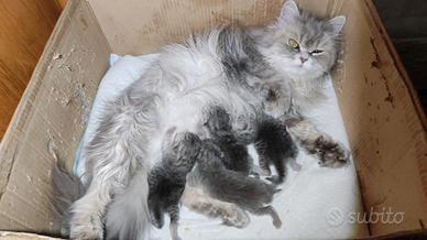Sono nati quattro cuccioli persiani chinchilla silver e blu. Nelle foto anche padre e cuccioli della precedente cucciolata. Si possono prenotare , tramite acconto , e saranno consegnabili da metà giugno a settanta giorni. Saranno svezzati, vaccinati , abituati alla toeletta quotidiana indispensabile per la cura e la salute del pelo lungo. Abituati ai rumori di casa, ai viaggi in macchina e ben socializzati con altri animali. Affettuosi , tranquilli , morbidissimi , assolutamente adorabili. Cresciuti con affetto , cura e con molta attenzione. Si richiedono stesse condizioni e casa con finestre e balconi sicuri.