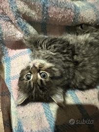 Tigrato muso schiacciato e pelo lunghissimo occhi verdi femmina