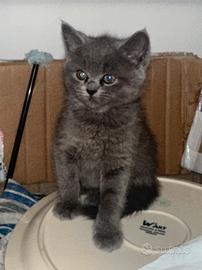 Grigio muso leggermente schiacciato pelo lungo completamente come la mamma persiana occhi verdi pelo lungo