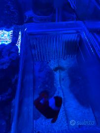 Vendo pesce pagliaccio colorazione "blood" rosso, causa competizione x dominanza con l'altro pesce, consegna a mano, il pesce è in vaschetta per evitare morsi e danni da parte dell'altra .