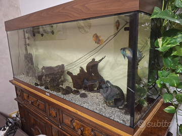 Cedo , pesci, acquario ,arredamento e pompa esterna . L'acquario è da 240 ltl della juwel. Possibile anche il mobile.