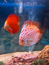 Esemplari discus di due tigrati (uno maschio e uno femmina) di facile accoppiamento. Due melon sempre coppia. L'età è di 9/12 mesi di vita. Vendo per passaggio ad altre razze e tipologia di pesci. Il prezzo è di €70 l'uno.