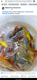 Carpe Koi 10cm Pesci gatto ameriu melas 5/10cm Pesce gatto Channel 25cm Carpe 10/20cm Tinche 10/20cm Medaka Vongole 3cm Siluri gialli 14/16cm Siluri normali 15/20cm Pesci rossi 10/15cm Sarasa 10/15cm Barbi 15cm Cobite 5/15cm Shubunkin 4/7cm Sdorioni 15cm Boccaloni 15/ 20cm GLo fish (pesci FLuorescenti) Oranda 4cm Carassi 10/15cm Persico reale 10/15cm Cavedano 15/20cm Axolotl bianco 15cm Cannolicchi x filtro Mangime Carbone attivo Anguilla cucciola Cobite Tostolobik 10/15cm E se serve altro lo ordino Direttamente a casa vostra Contattare il numero whatsap 3508940953