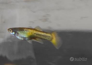Disponibili pesci guppy di colore prevalentemente giallo, ancora non completo. Vendo a 1 euro cadauno. Mi è rimasto anche l'ultimo maschio adulto blu neon a 2 euro. Consegna a mano presso mia abitazione.