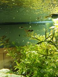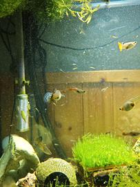 Splendidi avannotti di Guppy appena nati, molto colorati