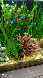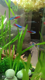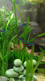 Vendo piccolo banco di 5 pesci Neon per acqua dolce, perfetti per abbellire il vostro acquario. Vendo per incompatibilità con il mio betta splendes perché rimane in disparte in quanto è un pesce solitario....i pesci Neon sono in ottima forma e vengono nutriti una sola volta al giorno.