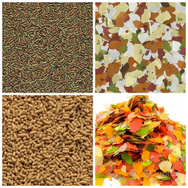 Ho inoltre SEMPRE DISPONIBILI TUTTO L'ANNO MANGIMI di marca di altissima qualità per pesci di qualsiasi tipologia (pesci rossi, carpe koi giapponesi, medaka, gambusie, avanotti, ecc...) e tarta rughe acquatiche, disponibili in pellet (per tutti i pesci di taglia medio-grande), in scaglie (per tutti i pesci di taglia medio-piccola) o in granulometria fine (per medaka, gambusie, avanotti e altri piccoli pesci); completi di tutti gli elementi nutritivi necessari ai pesci e tarta rughe acquatiche, con il corretto rapporto proteine-grassi di 3:1 secondo il NEO Index, che consiste in un'alimentazione naturale, ottimizzata sulla richiesta energetica, che considera la temperatura dell'acqua, la funzione, la taglia e l'età dell'animale; in questo modo le difese immunitarie rimangono alte ed i colori dei pesci belli brillanti.