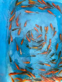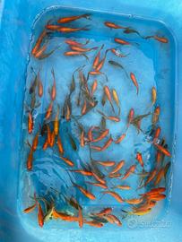 Pesci rossi normali e cometa con pinne e code alate. Nati in laghetto, grandezza dai 5 ai 12 cm circa... 2 euro all'uno, a chi ne prende 10 ne regalo uno in più.