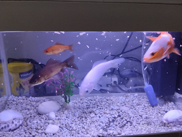 Salve 4 pesci rossi uno di 10cm,,uno di 9cm,, è uno di 8cm ,e uno piccolino rosso,li cedo tutti 20€ ho li scambio guppy ecc.