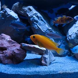 Vendo maschio adulto 7/8 cm di pseudotropheus Saulosi (quello nelle foto) Ho disponibili anche degli esemplari piu piccoli, che dovrebbero essere femmine, la piu grande e' di 5 cm, scrivo " dovrebbero" perche vista la presenza di un altro saulosi dominante, le presunte femmine, potrebbero essere maschi sottomessi e quindi rimasti gialli) Il prezzo per il maschio adulto e' di 8 per la "femmina" di 6 cm , 7 Per gli altri saulosi non sessabili di circa 4 cm, invece 5 Sconto per acquisto multiplo Per la ricerca: ciclidi africani, acquario, pesci acqua dolce, mbuna malawi