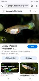 Vendo pesciolini Avanotti di Guppy, da acquario acqua calda. Le foto sopra sono solo indicative, per capire di che pesciolini si sta parlando, per gli interessati invio le foto dei pesciolini in questione se si desidera. I pesciolini sono appena nati, ovvero, ne ho di 1 mese di vita, oppure di qualche giorno. Vendo minimo 5 pesciolini per volta a 2 euro l uno trattabili.