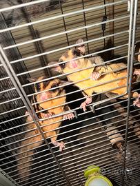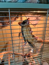 Vendo coppia di petauri dello zucchero, per mancanza di spazio a casa La vendita comprende: o ? Gabbia spaziosa già allestita o ? Casette/nidi per dormire o ? Ruota per esercizio o ? Ciotole per cibo e acqua o ? Giochi e accessori vari