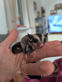 Vendo petauro dello zucchero baby allevata a mano disponibile ora sono femmina di 3 mesi e mezzo . Cresciuta e allevata a mano ,abituata al contatto con uomo e bambini .