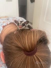 Vendo cuccioli di Petauro dello zucchero allevati a mano, abituati al contatto umano Disponibili due maschietti leucistici (bianchi) e una femmina ancestrale (grigia)