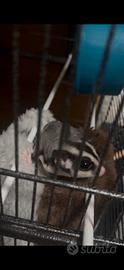 Timmy ha 8 mesi, é un esemplare vivace e ben curato, va via assieme a tutti gli accessori utili a dormire/svagarsi/decorare. La gabbia che includo assieme é adatta al solo trasporto dell'animale in quanto non adeguata per via delle dimensioni (ci tengo a specificare che la gabbia nella quale vive non é assolutamente quella che fornisco).