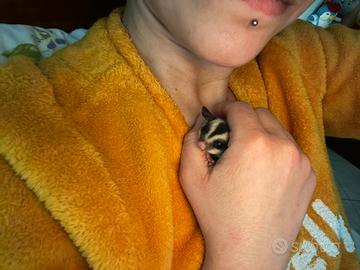 Disponibile Petauro dello Zucchero abituata fin da piccolissima al contatto umano, ha un carattere curioso e ama mettersi dentro le maniche del vestiti per accoccolarsi. Si cede con certificazione di visita e esame feci del veterinario esperto in esotici.