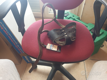 Vendo due pettorine, due collari e una museruola in cuoio per cani, tutto nuovo mai usato con ancora il prezzo col targhettino originale! Ogni pettorina a è costata 50 euro e vendo a 30 l'una, i collari sono costati 60 euro l'uno e vendo sempre a 30 l'uno, la museruola è costata 40 euro e vendo a 20 euro. Tutto per cani di taglia grande, se compri in blocco applico ulteriore sconto.. Posso spedire.