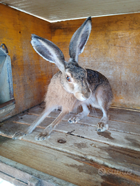 Pezzata gigante con cuccioli, lepre selvatica adul
