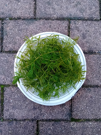 Pianta Acquatica Galleggiante Acquario Lago Pond - Ceratophyllum Il Ceratophyllum demersum, conosciuto anche come ceratofillo o "hornwort", è una delle piante acquatiche più diffuse e apprezzate per la sua versatilità. Presenta lunghi steli ricchi di foglioline sottili che creano un effetto verde intenso e naturale, perfetto per dare movimento e volume all'acquario.