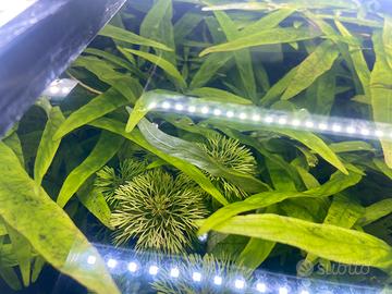 Limnophila indica 1€. Stelo Hydrophilia corymbosa 3€ per pianta 10 cm alta Anubias 5€ Muschi di Java 3€ a vaschetta Muschio a palla 3€ a palla Filodendro con radici in acqua 6€