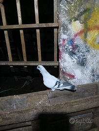 Disponibili coppia di piccioni cravattati maschio bianco vergato e femmina grigia