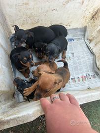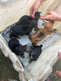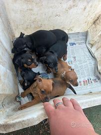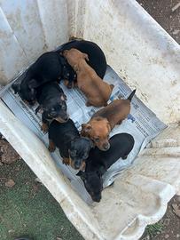 Cucciolata di pincher nati il 26 febbraio sono due femmine nere giocate, due femmine fulve e tre maschi nero focato. Verranno consegnati con vaccini microchip passaggio di proprietà assistenza post vendita
