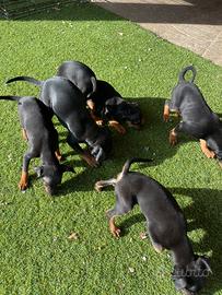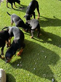 Sono già pronti cuccioli di pincher nero focati due femmine e quattro maschi completi di microchip vaccinati sverminati libretto sanitario certificato di buona salute e Puppy kit