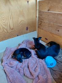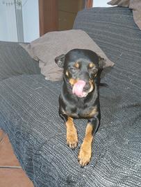 Bellissima cucciola di pincher nano, nata il 10 febbraio, sverminata, con primo vaccino e libretto veterinario cerca casa, genitori di mia propieta, padre 4,5 kg e madre 3,5 kg e visibili dal vivo. Cedesi a veri amanti degli animali, no perditempo.