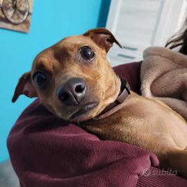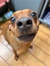 Si chiama Bella ed è un cagnolino vivace ma molto più ubbidiente per natura rispetto al carattere che hanno di solito i cagnolini della sua razza. Ha il manto marrone e marrone più scuro sulle zampine e il musetto.