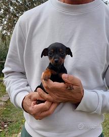 Sono disponibili cuccioli di Pinscher maschi e femmine con mantello sia nero focato che rosso cervo. Hanno circa 2 mesi di età. Vengono ceduti con il primo vaccino e le tre sverminazioni eseguite.
