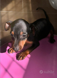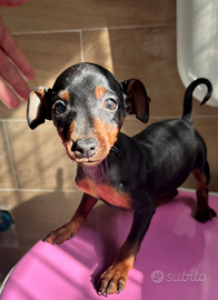 Disponibili cuccioli di Pinscher nero focato, un maschio ed una femmina, sono disponibili da subito, poiché hanno finito lo svezzamento, i cuccioli sono svermifugati e con primo vaccino effettuato, saranno ceduti con regolare libretto sanitario, i genitori hanno entrambi il pedigree e sono miei. Per ulteriori informazioni contattatemi su WhatsApp.