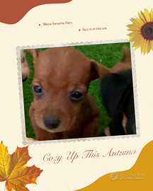 Eccoci con due Pinscher maschi da prenotare di circa 40 giorni senza pedigree ENCI. Verranno consegnati compiuti 60 giorni con il loro libretto sanitario, microchip, sverminazione e prima vaccinazione.