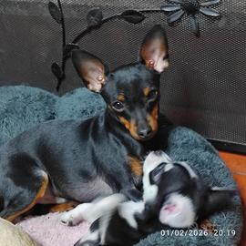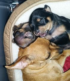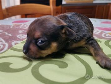 Zona Sarzana SP Disponibile femminuccia di simil Pinscher marrone focato, nata il 15marzo. Pronta non prima di fine maggio,con sverminazione ,primo vaccino e visita veterinaria . La mamma e di colore fulvo il papà nero focato entrambi piccoli 3 kg la mamma 2.5 kg il papà. Nati in casa genitori sani e intelligenti , molto affettuosi e giocherelloni. Per maggiori info contattare su WhatsApp al 3313230807 se veramente interessati..Non sono in regalo........